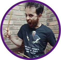 Hugo es Maestro en Artes Musicales de la Academia Superior de Artes de Bogotá, ASAB, con énfasis en percusión y batería.