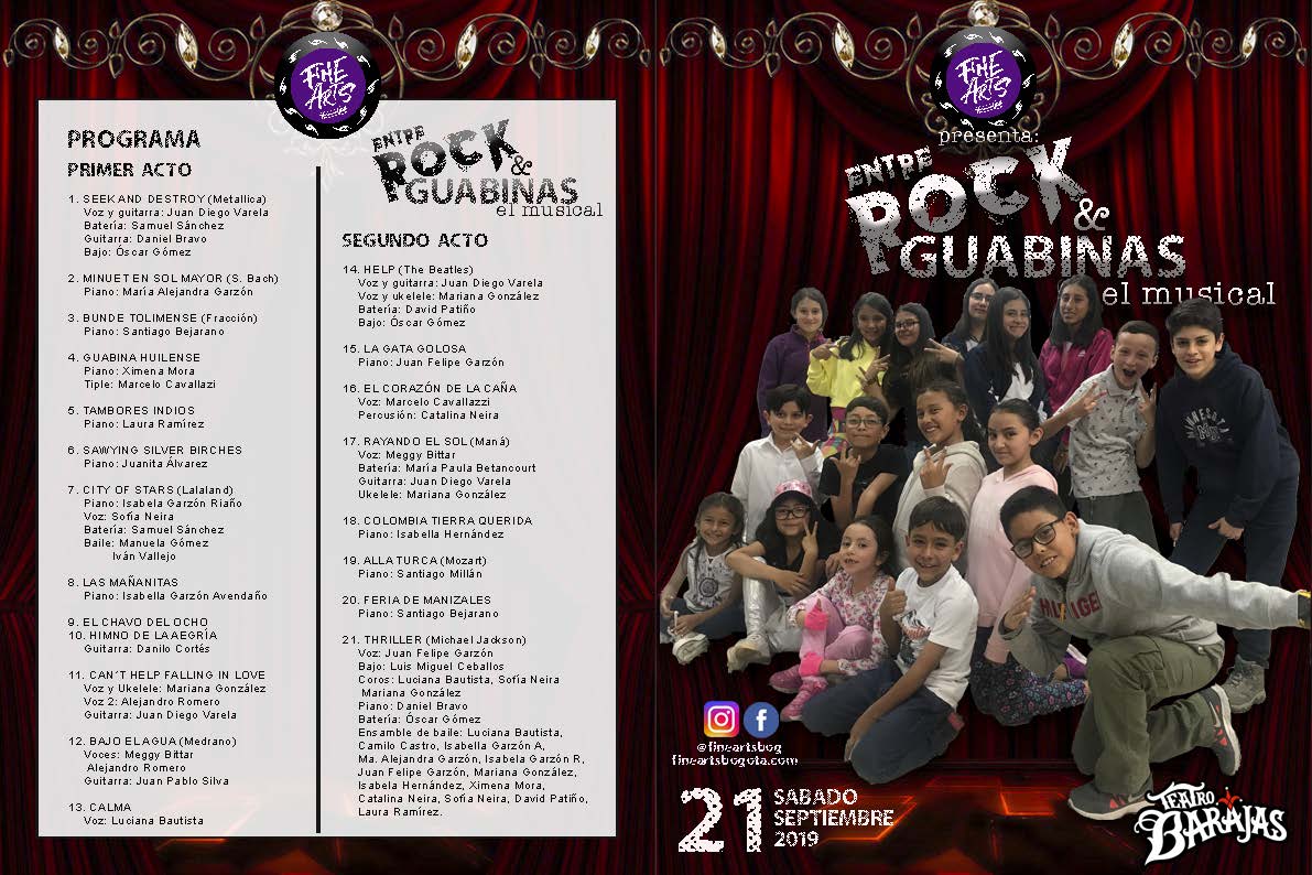 Entre Rock y Guabinas es un musical en dos actos que se presentó en el TEATRO BARAJAS en septiembre de 2019.
